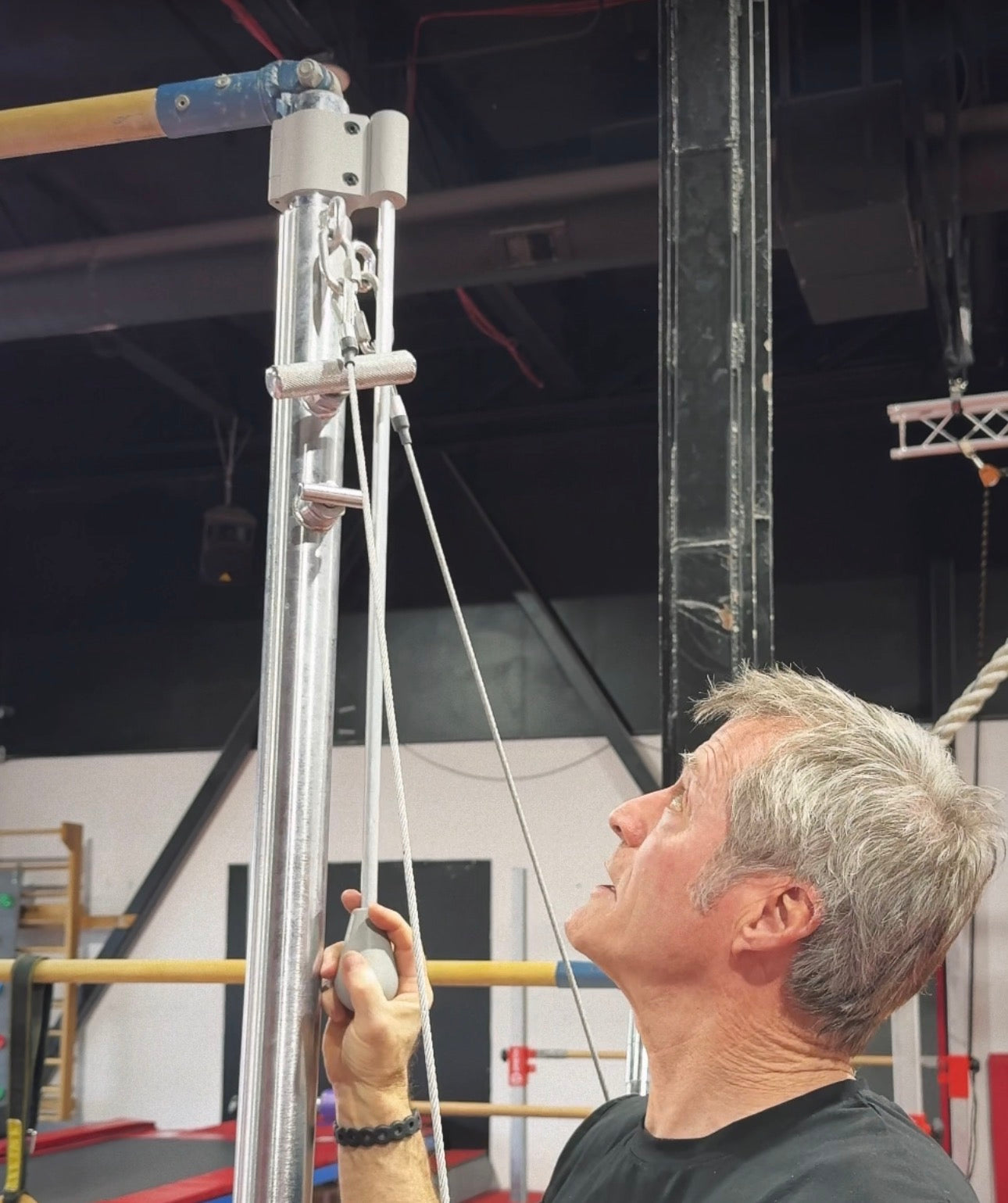 Safe for coaches and gymnasts when adjusting the height of most AAI uneven bar sets. Upgrade your gym!