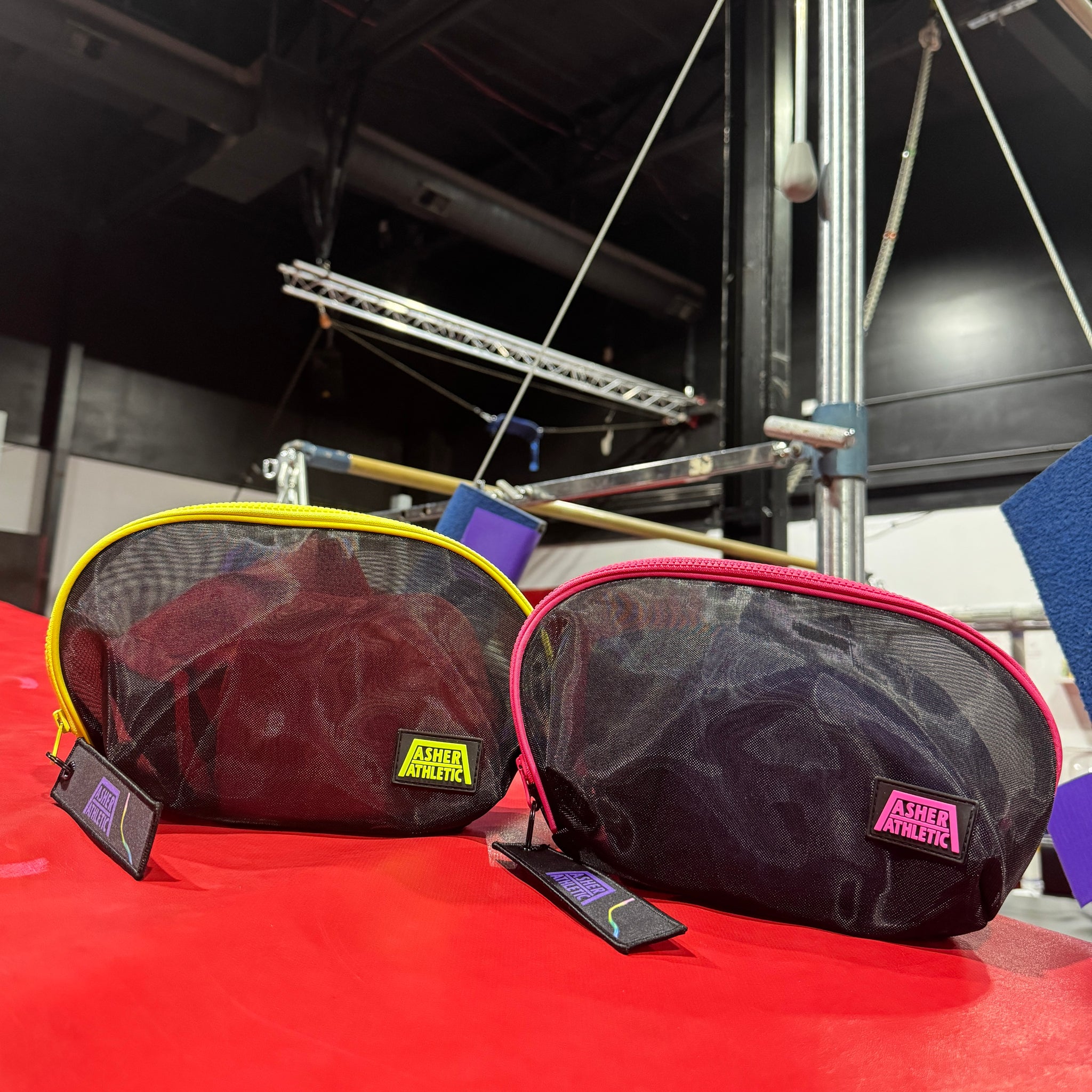 Combining style and practicality, this athletic clutch bag offers a secure and convenient way to store your essentials at the gym. Gymnasts, athletes, and active people have a new and fun option for grips, heel pads, simple gear, mini water bottle, ear buds, and more – Perfect for your workout or trip to the gym.
