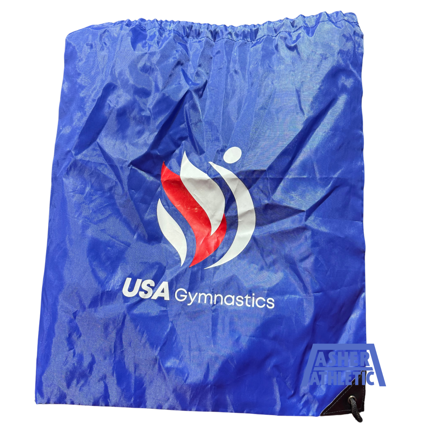 Carry your gear in style with this patriotic USA Gymnastics drawstring bag, featuring the official current logo and built to last. Reinforced lower corners and heavy-duty nylon drawstrings ensure your equipment stays secure through every practice and competition.